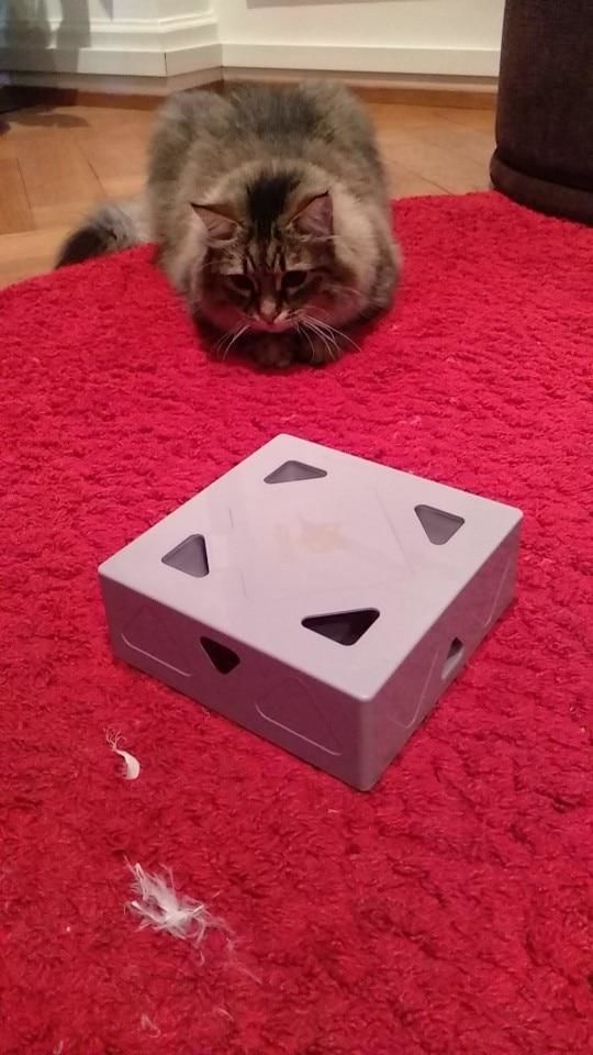 Unsere 2 Katzen spielen gerne mit der Box. Das Spielzeug ist robust. Der Geräuschpegel hält sich in Grenzen.