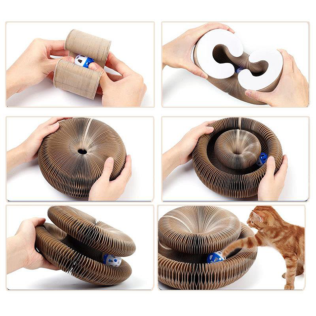 Dank seinem flexiblen Design bietet das Orgel-Kratzbrett zahlreiche Faltmöglichkeiten. Dies ermöglicht es, die Form nach den Vorlieben deiner Katze anzupassen und ihr eine abwechslungsreiche Kratz- und Spielumgebung zu bieten.