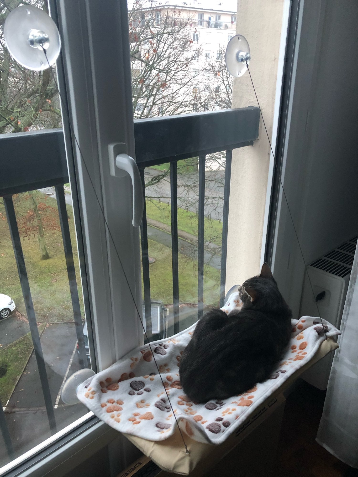 Diese Katzenhängematte stärkt den Beobachtungsinstinkt, fördert die Entspannung und wirkt präventiv gegen Stress.