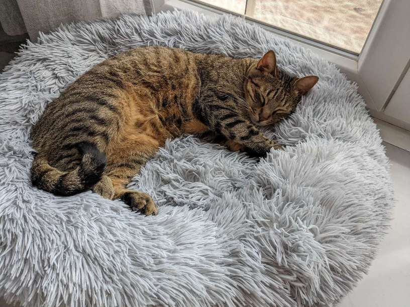 Ein äußerst komfortables Katzenbett – unsere Kleine hat sich offensichtlich über ihr neues Schlafplätzchen gefreut.